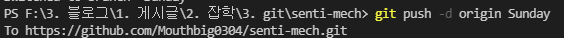 git push -d origin(원격명) Sunday(브랜치명)