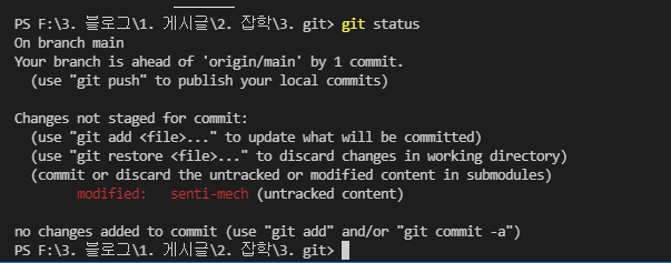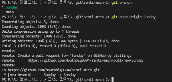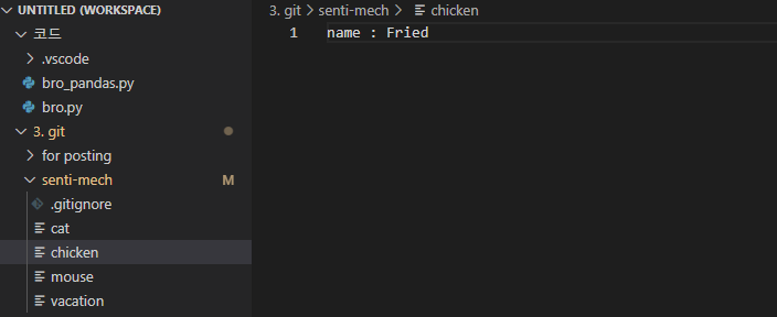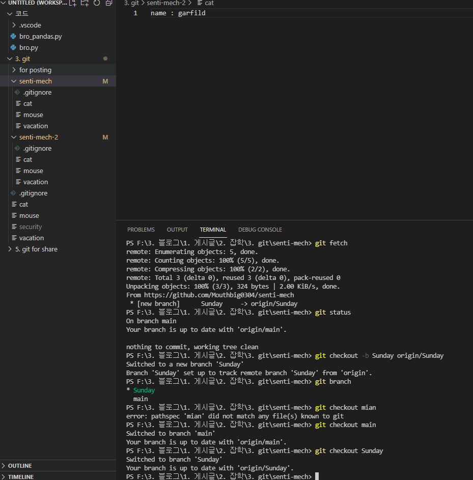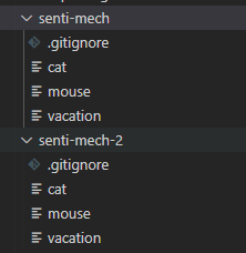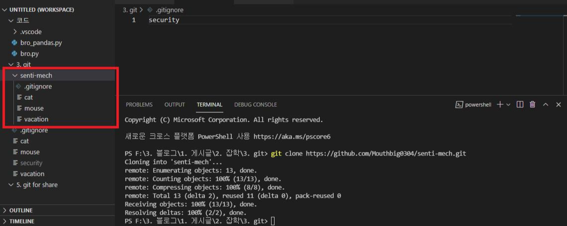명령어를 썼더니 현재 디렉토리 내부에 senti-mech(저장소명)라는 폴더가 생겼고,