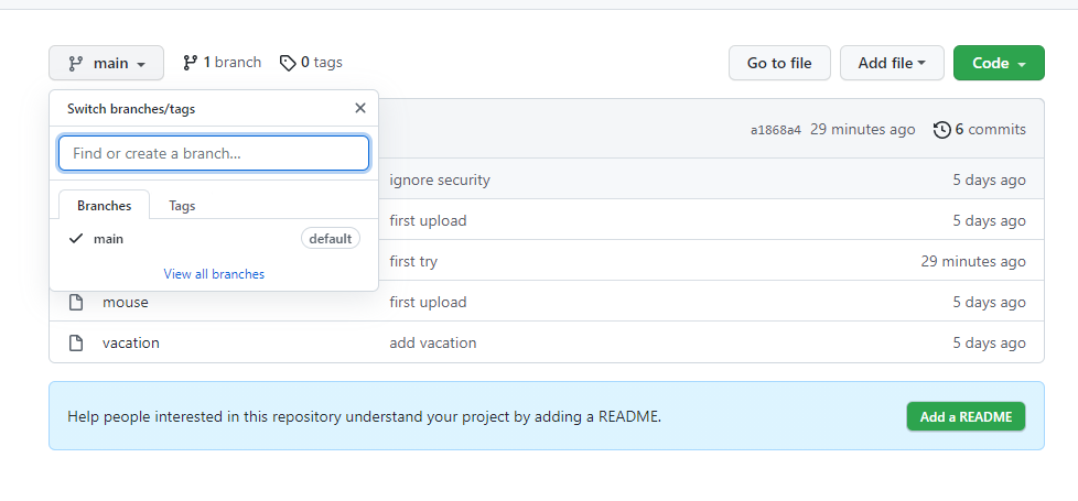 첫번째 폴더로 디렉토리 변경 후, 위 명령어를 입력하니